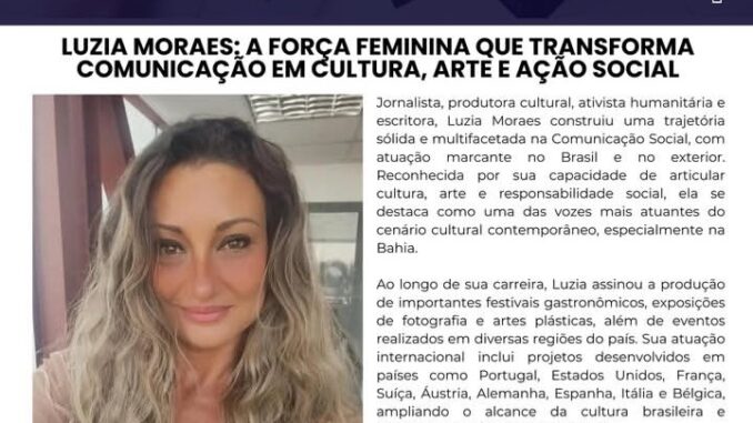 A matéria apresenta um panorama da carreira de Luzia, evidenciando sua contribuição para a cultura, a literatura e as causas socioambientais, além de seu engajamento em projetos que unem arte, comunicação e responsabilidade social. Com uma atuação marcada pela sensibilidade e compromisso, Luzia construiu um percurso sólido que ultrapassa fronteiras, levando sua voz e suas ações a diferentes países.